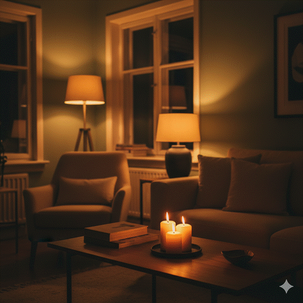 Every room benefits from at least three types of light: ambient (general room illumination), task (focused light for reading, cooking, or working), and accent (atmospheric mood lighting from lamps, candles, or LED strips). Layer these sources thoughtfully: a floor lamp in a living room corner, a bedside lamp for reading, under-cabinet lighting in the kitchen, and a scented candle cluster on the coffee table.