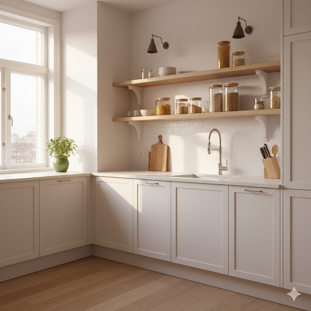 ✦ Styling Tip: Line the interior of your kitchen cupboards and drawers with adhesive shelf paper before placing items inside. This protects the surfaces, makes cleaning significantly easier, and adds a small but genuinely beautiful finishing touch that elevates the feel of the entire kitchen interior.