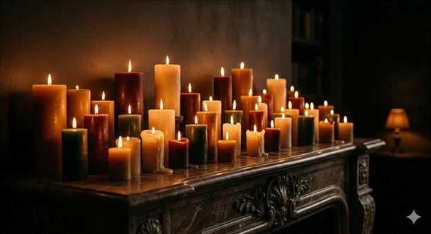 Styling Tip: Invest in a mix of scented and unscented pillar candles. For the fireplace area, warm scent profiles — cedarwood, amber, cardamom, dried orange, or smoked vanilla — create an olfactory layer of coziness that amplifies the visual atmosphere significantly. Trim wicks to a quarter inch before lighting to ensure a clean, even burn that maximizes candle longevity.
