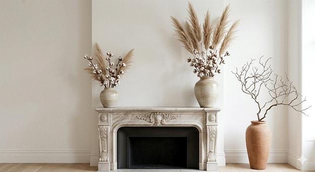 Dried botanicals have emerged as one of the most enduring and elegant trends in contemporary home decor, and their natural affinity with the autumn palette makes them a particularly powerful tool for seasonal fireplace styling. Dried pampas grass, cotton stems, wheat stalks, preserved eucalyptus, and artichoke heads all bring extraordinary texture and a muted, dusty palette that feels perfectly calibrated for the season.