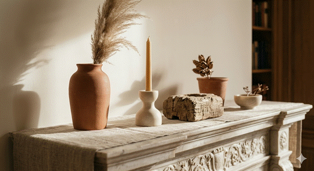 1. Layer Earthy Textures on the Mantel