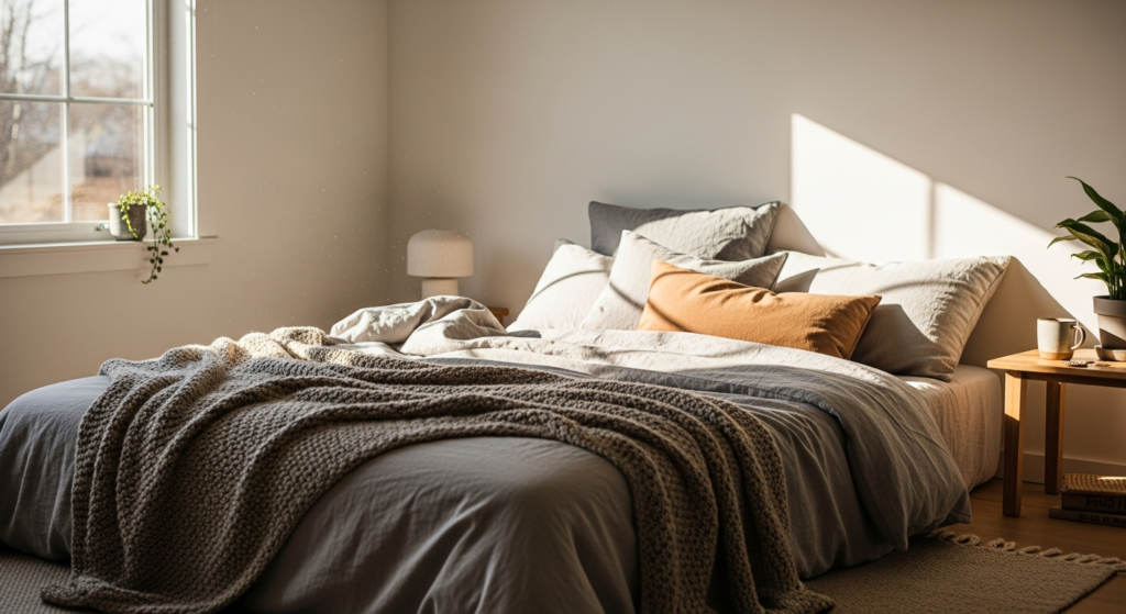 Neutral tones like white, beige, grey, and soft pastels create a calm and versatile look.