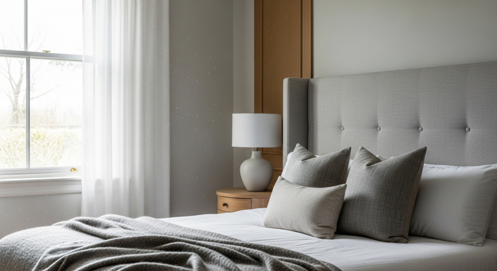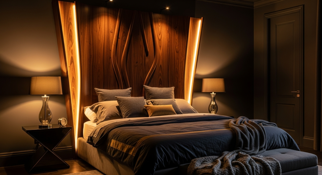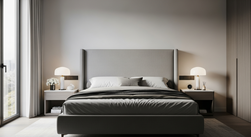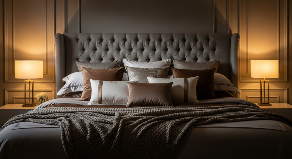 Use layered bedding, textured fabrics, statement headboards, and warm lighting for a refined feel.