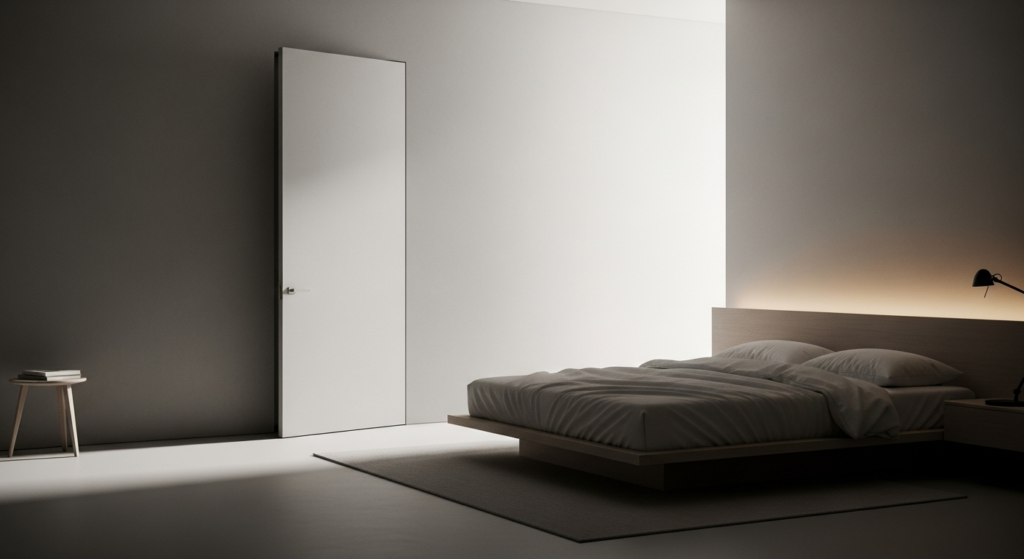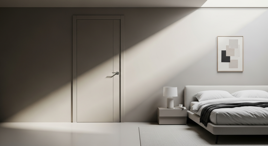 Minimalist flush doors and concealed doors are ideal for modern interiors due to their clean and seamless look.