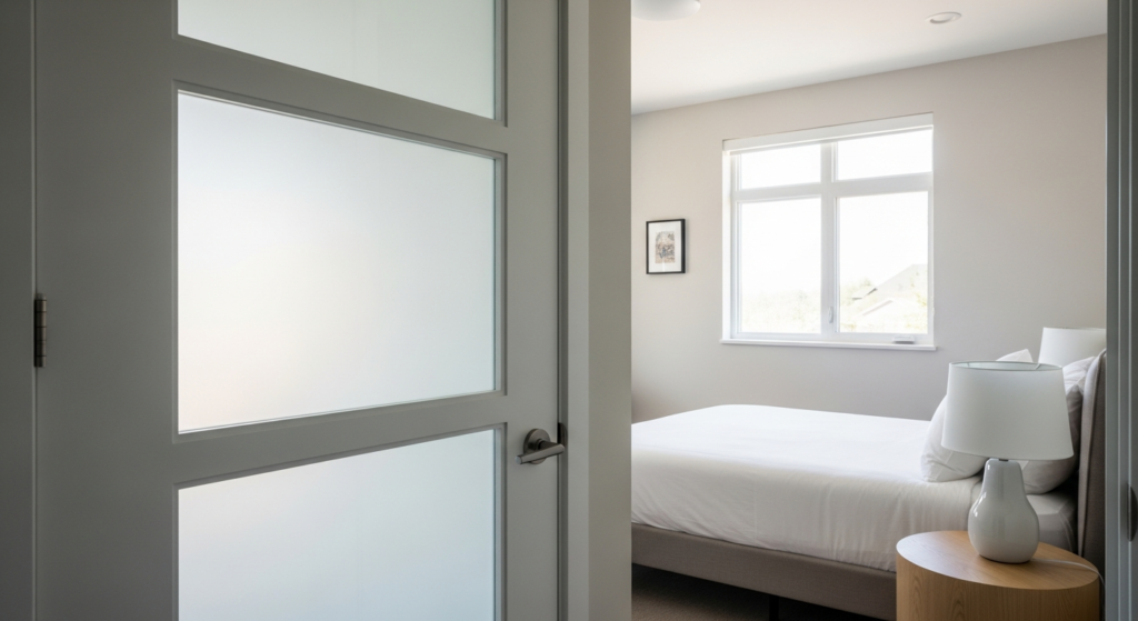 Use frosted or tinted glass for privacy. Pair with slim wooden or metal frames for a modern aesthetic.