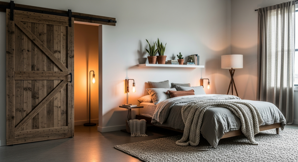 Barn doors add character and a rustic-modern appeal.