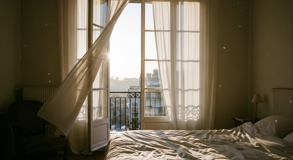 Use sheer curtains for softness and privacy. White or light-toned frames enhance the airy aesthetic.