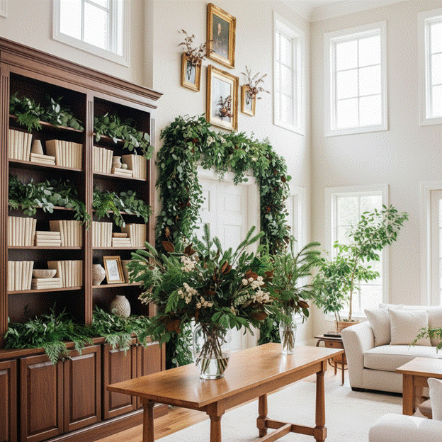 Greenery is the connective tissue of beautiful Christmas living room decor — the element that ties trees, mantels, and table arrangements into a single cohesive seasonal narrative. And in 2025, the palette of seasonal greenery has expanded far beyond standard holly and pine to include eucalyptus, olive branches, cypress, magnolia, cedar, and dried botanical elements that add depth and longevity.