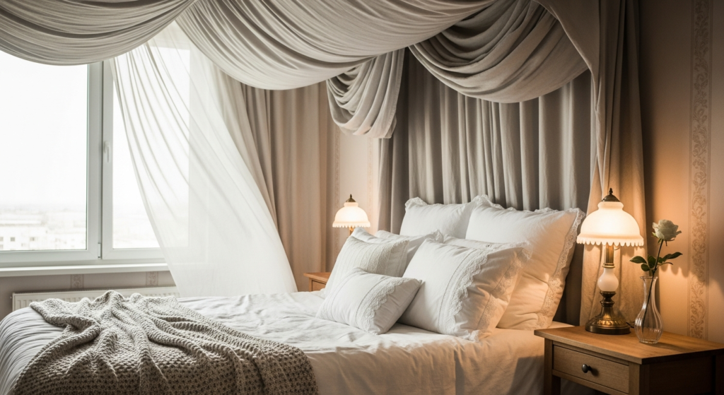 Flowing drapes or canopy styles create a dreamy, luxurious atmosphere.