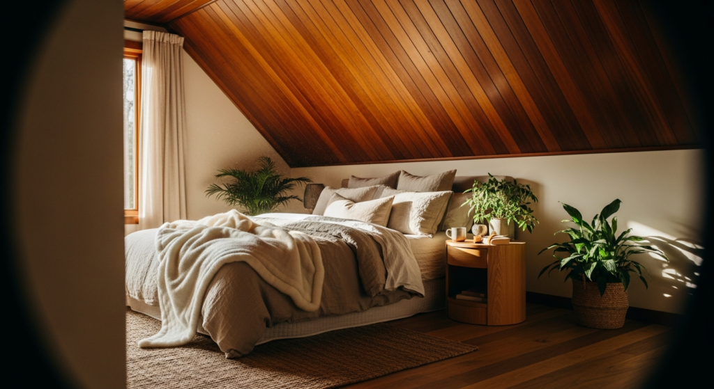 Whether through beams or panels, wooden ceilings create a cozy yet upscale atmosphere.