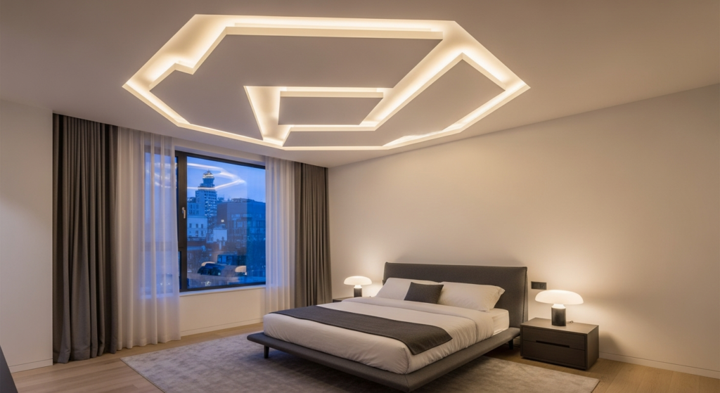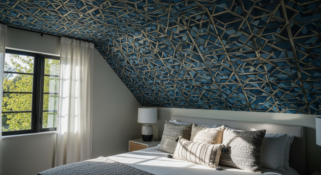 Modern geometric designs bring a contemporary edge to bedroom ceilings.