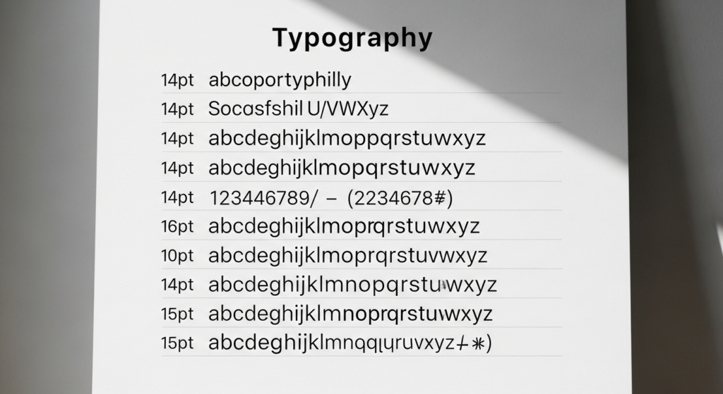 Use neutral backgrounds with black or dark text, and maintain generous spacing for a polished look.
