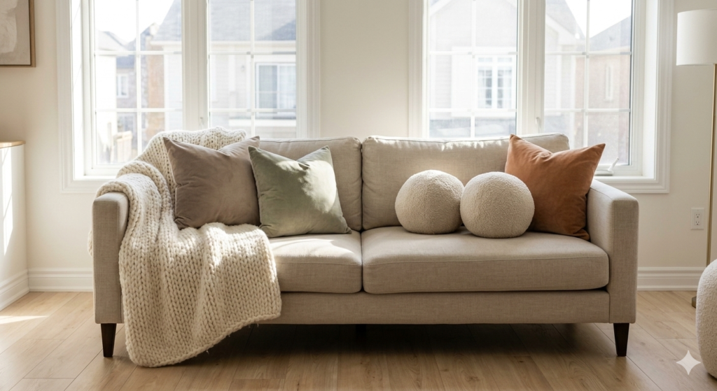 Warm neutrals such as cream, taupe, beige, and soft browns instantly make a room feel inviting. These colors work well as a backdrop for other cozy elements.