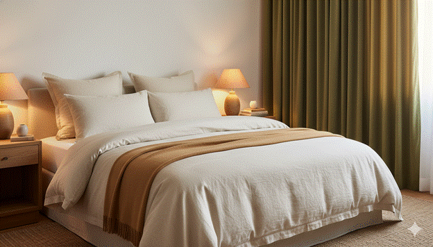Styling Tip: Velvet curtains are the single most cozy and most visually luxurious curtain choice available for cozy room decor purposes. Their deep pile texture absorbs sound and radiates visual warmth; their weight creates the most naturally falling, most beautifully draped curtain form; and their characteristic surface lustre — the way velvet catches and shifts light as it moves — adds a quality of living, dynamic visual richness to the window that no other curtain fabric can replicate. In deep, warm tones — forest green, midnight navy, warm burgundy, or rich aubergine — velvet curtains are the definitive statement of cozy room decor luxury.