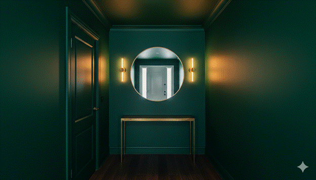 Styling Tip: When applying a bold colour or pattern to an entryway, carry it as extensively as possible — over the walls, onto the ceiling, and to the back of the front door — for the most powerful, most architecturally immersive result. A bold colour that stops at the picture rail or the door frame creates a contained, wallpaper-sample quality; a bold colour that wraps the entire space creates an architectural environment that is genuinely transportive. Pair the bold entryway colour with a high-gloss finish on woodwork and doors — the reflective surface adds visual complexity and glamour that a matte finish cannot provide in a rich-coloured entryway.