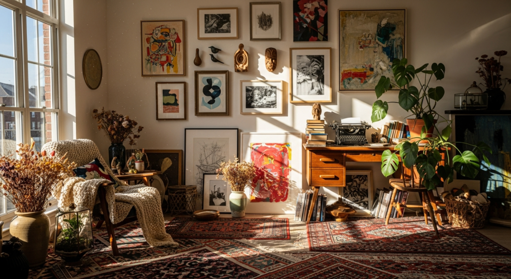 Layering creates a curated, artistic environment.