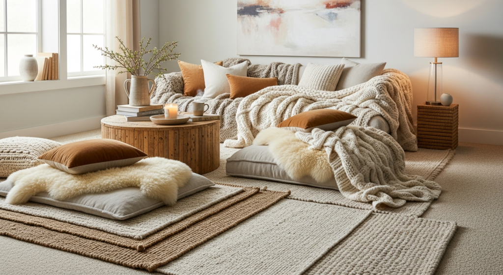 • Layer rugs and throws