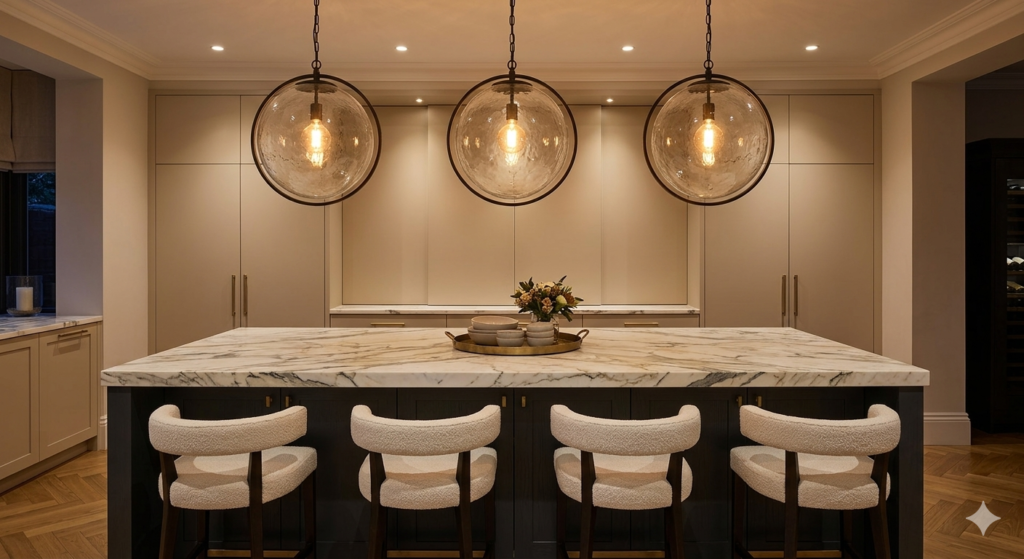 Lighting can dramatically influence the aesthetic of a kitchen. Statement pendant lights above the island or dining area instantly elevate the design.
