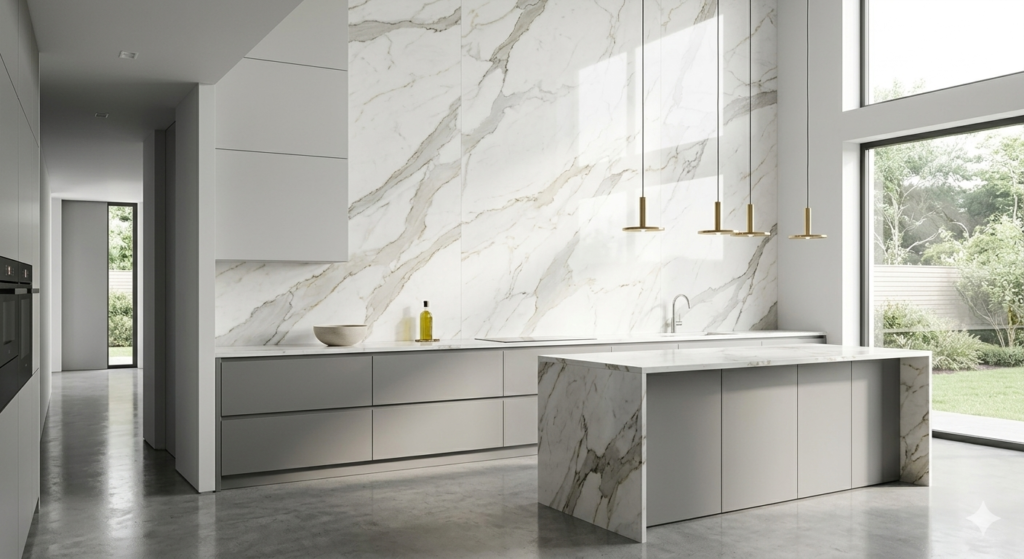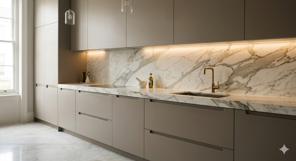 Few materials elevate a kitchen aesthetic like marble or quartz countertops. Their natural patterns and elegant surfaces add instant sophistication.
