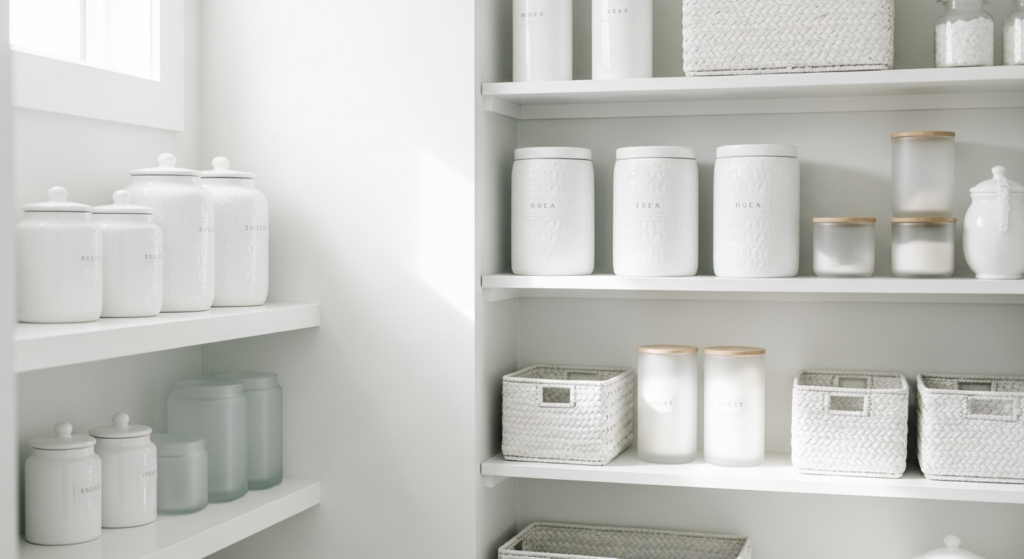 9. Minimalist White Pantry Design