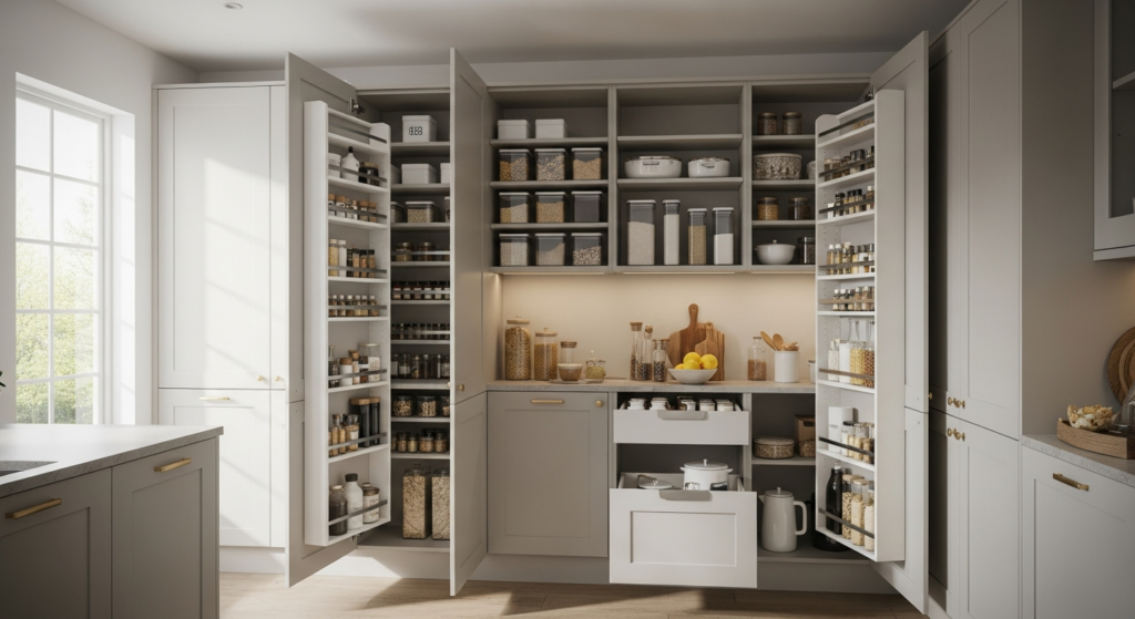Modern kitchen store room ideas in Indian interiors are now evolving into beautifully organized, aesthetically pleasing spaces. By combining smart layouts, natural textures, and efficient storage solutions, you can transform even the smallest pantry into a refined and inspiring part of your home.