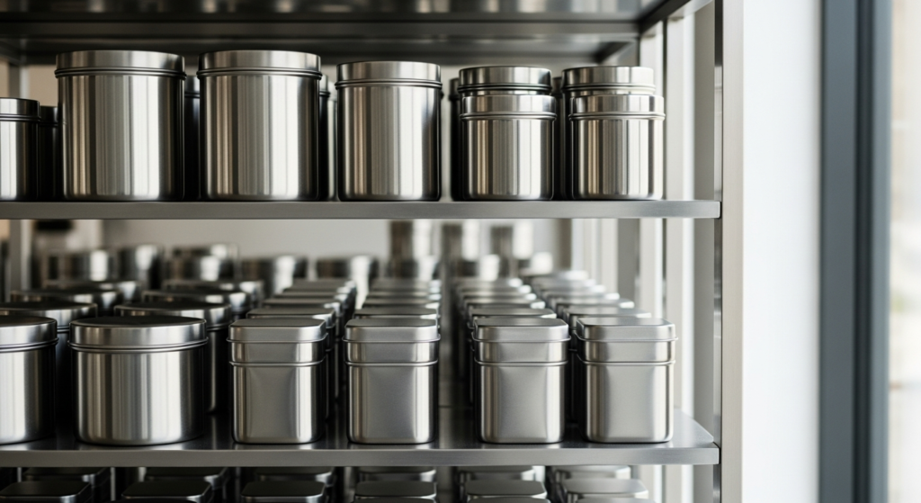 8. Stainless Steel Storage Aesthetic
