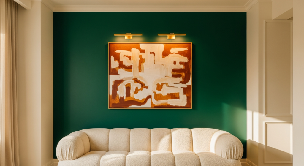 • Choose the accent wall thoughtfully: the most effective accent walls are those behind the primary seating piece (the sofa wall), opposite the main entrance (so the statement is the first thing seen upon entering), or beside the fireplace (amplifying the room’s existing focal point).