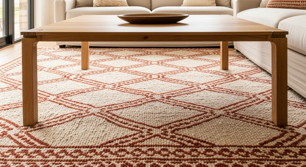 Q3: What size area rug should I use in my living room? As a general guideline, the living room area rug should be large enough for all front legs of seating furniture to rest on it — or, ideally, for the entire seating group to sit within the rug’s perimeter. In a standard living room, this typically means a minimum rug size of 8 by 10 feet or 9 by 12 feet. A rug that is too small — floating beneath only the coffee table with furniture legs entirely off its surface — is one of the most common and most visually disruptive living room decor mistakes.