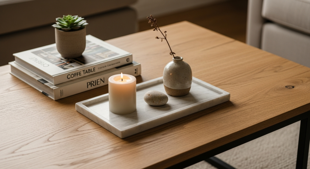 • Edit ruthlessly and resist the instinct to fill every surface: a coffee table that is 60 to 70 percent filled reads as curated and intentional; one that is 100 percent filled reads as cluttered, regardless of the individual beauty of its components.