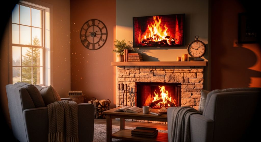 Combining a fireplace with a TV creates a cozy focal point.