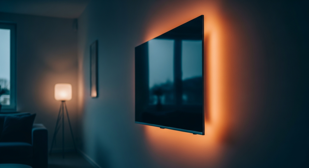 It creates a soft glow around the TV.