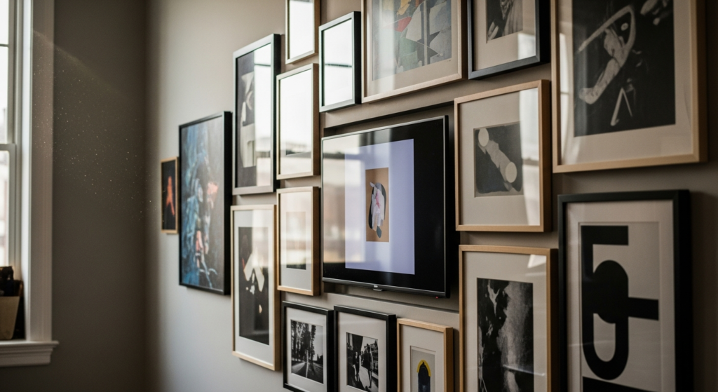 A gallery arrangement turns the TV into part of the decor.