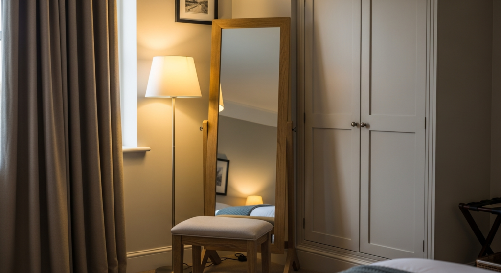 A mirror in a bedroom corner does something remarkable — it simultaneously solves the visual challenge of an underutilised space, reflects natural and artificial light deeper into the room, creates the impression of greater depth and volume, and introduces a decorative element of genuine elegance and daily utility. It is the rare interior design choice that delivers aesthetic beauty, practical function, and spatial transformation in a single, considered decision.