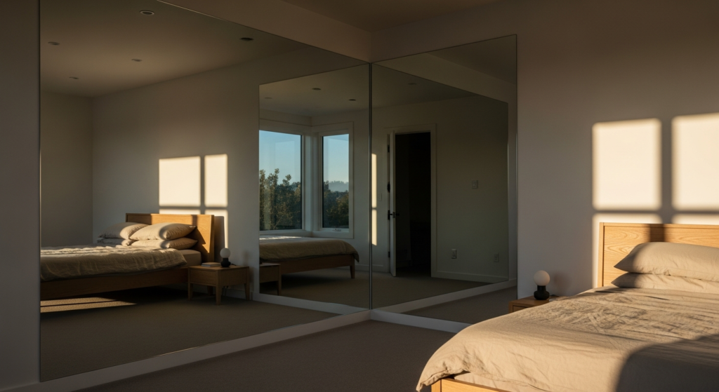 Q2: How do mirrors in bedroom corners make a room look larger? Mirrors in bedroom corners expand the perceived size of the room in two distinct ways — through light reflection and through spatial illusion. A mirror reflects natural and artificial light back into the room, creating a brighter, more expansive atmosphere than the same corner without mirror. Simultaneously, the mirror’s reflective depth creates the visual impression of an adjacent space beyond the corner wall, making the room appear to extend further than its actual physical boundaries. The larger the mirror and the more complete its reflective coverage of the corner, the more dramatic both effects become.