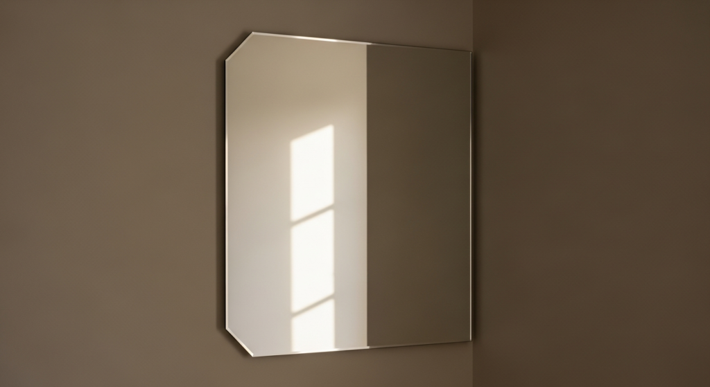 Styling Tip: Frameless mirrors require careful installation — the edges should be polished or bevelled for safety and for a refined finish. A bevelled edge creates a subtle decorative quality while maintaining the overall minimalist aesthetic. Position the frameless mirror in the corner at a height that reflects the most beautiful portion of the room — capturing natural window light, a beautiful ceiling pendant, or the most appealing view of the room’s primary design elements. A frameless mirror in a corner of a warm, natural-material bedroom creates a beautiful visual tension between the organic richness of the textures and the clean, precise quality of the mirror surface.