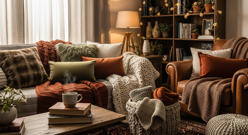 Mix fabrics like linen, cotton, and wool for a rich tactile feel.