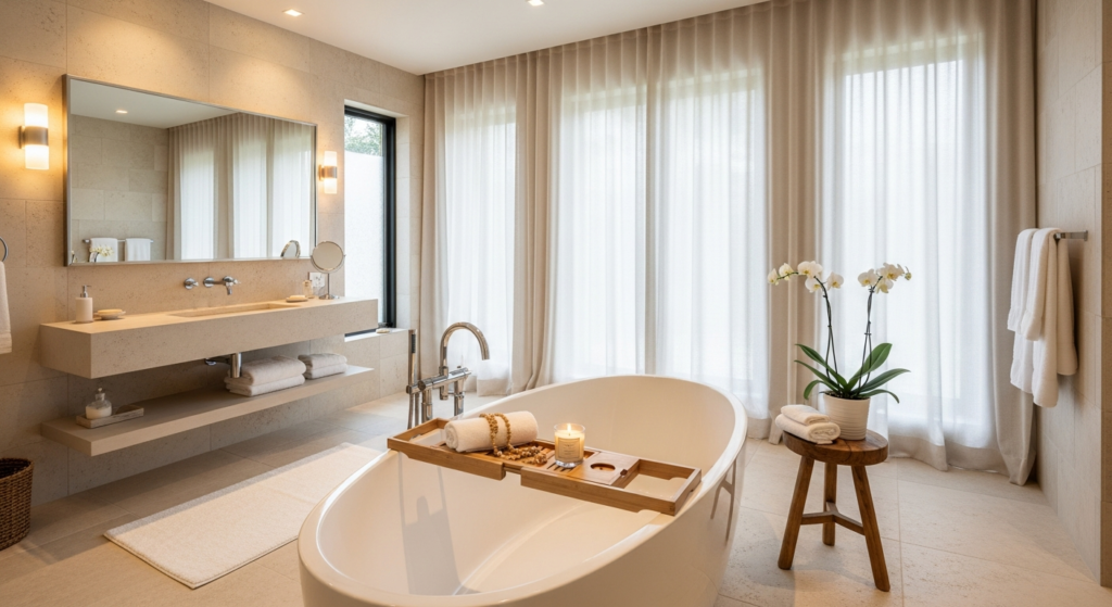 Incorporate warm lighting and minimal decor for a tranquil ambiance.