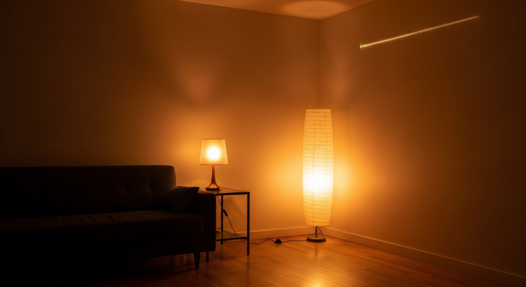 Styling Tip: Never rely on a single overhead light source for living room illumination. Layer three types of lighting for the most beautiful result: ambient lighting from a soft overhead source, task lighting from table lamps positioned beside seating, and accent lighting from a floor lamp in a corner or picture lighting above artwork. All light sources should use warm-toned bulbs — 2700K to 3000K colour temperature — for the most flattering, inviting atmosphere.