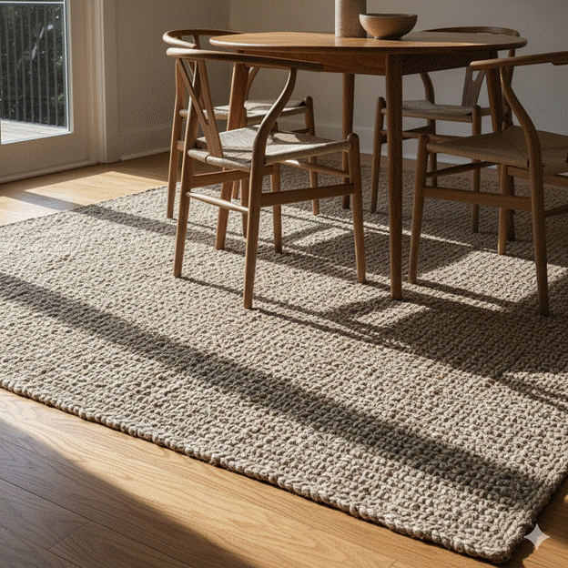 For a small apartment dining room, flatweave rugs in natural fibres — cotton, jute, or a jute-cotton blend — are the most practical choice. They are easy to clean, low enough in pile to not impede chair movement, and available in textures and patterns that add genuine visual interest without competing with the furniture above them.