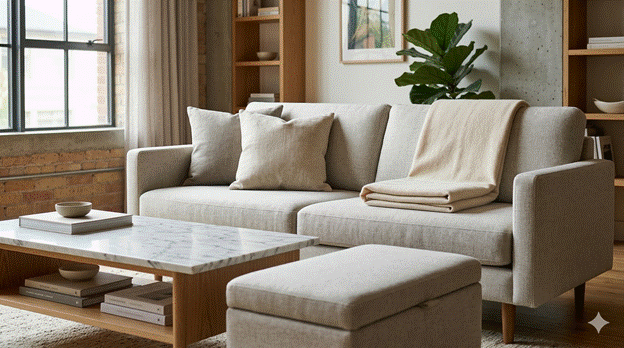 Styling Tip: When selecting a sofa bed for a studio apartment, prioritise the sofa mode over the bed mode in terms of aesthetics — you will look at it as a sofa every day, whereas the bed configuration is used only occasionally. Choose a design with clean, low-profile arms and legs, which creates a greater feeling of floor space and light beneath the piece. A daybed with a simple bolster arrangement is an even more elegant solution that reads as deliberately designed rather than practically necessitated.