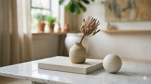 In a studio apartment, surfaces — coffee tables, dining tables, kitchen counters, floating shelves, windowsills — are the most visible horizontal planes in the room and carry an enormous responsibility for the overall atmosphere of the space. Cluttered, unedited surfaces are the most common and most damaging source of visual noise in small apartment interiors, creating a sense of disorder that no amount of furniture or colour investment can overcome.
