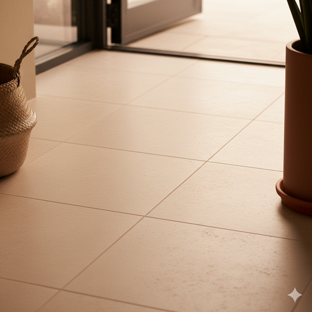 Large-format tiles — those measuring sixty by sixty centimetres or larger — have the additional benefit of minimising grout lines, which creates a more seamless surface that reflects light evenly across the floor plane. In a sunroom entryway where natural light is the defining feature, this uninterrupted floor surface amplifies the brightness and spaciousness of the room significantly.