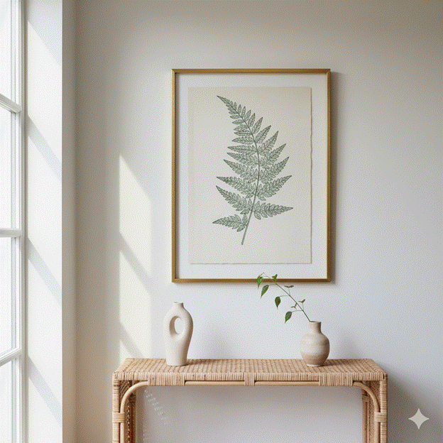 Choose artwork that references the natural world — botanical illustrations, landscape paintings, abstract works inspired by water or stone — to reinforce the inside-outside narrative of the sunroom. A single large-scale work on the wall facing the entrance creates an immediate focal point that gives the entry genuine cultural and personal character. Sculptural objects on a console or plinth — ceramic, stone, or cast bronze — bring three-dimensional depth to the curated environment.
