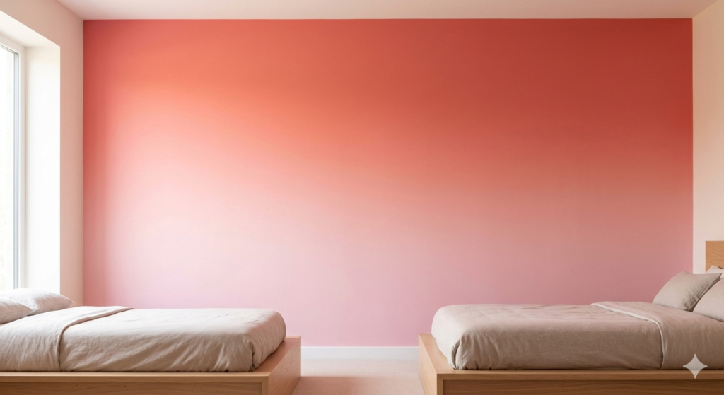 Gradually transition colors from light to dark to add movement. Ideal for bedrooms or living rooms. Use soft pastel tones or vibrant hues depending on room size. Lighting: natural light emphasizes gradients. Tip: Pair with minimalist furniture to avoid visual clutter.