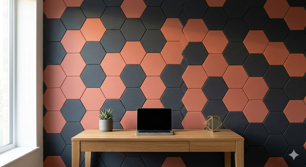 Add modern flair with triangles, hexagons, or chevrons. Paint in contrasting colors or use stencils for precision. Layout tip: Keep large patterns on one wall for sophistication. Lighting: directional lighting highlights edges and shadows, enhancing dimension.