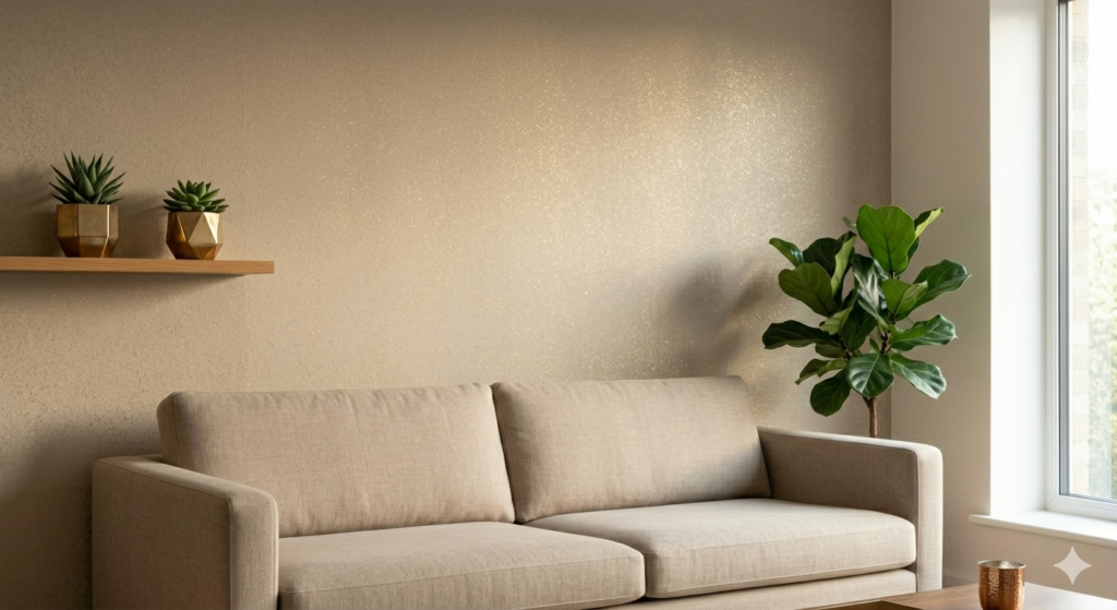Add luxury with gold, bronze, or silver accents. Use sparingly on trims or feature walls. Lighting: golden hour natural light amplifies reflective quality. Tip: Pair with neutral furnishings for a balanced and elegant look.