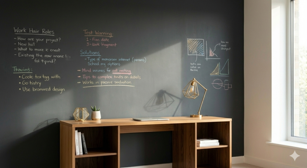 Functional and playful, ideal for kitchens or home offices. Paint colors: classic black, dark green, or slate gray. Tip: Use high-quality chalk paint for smooth writing. Decor: Pair with wooden shelves and modern lighting for a chic look.
